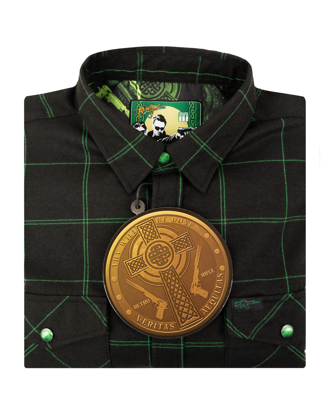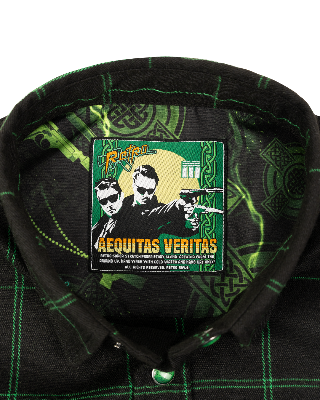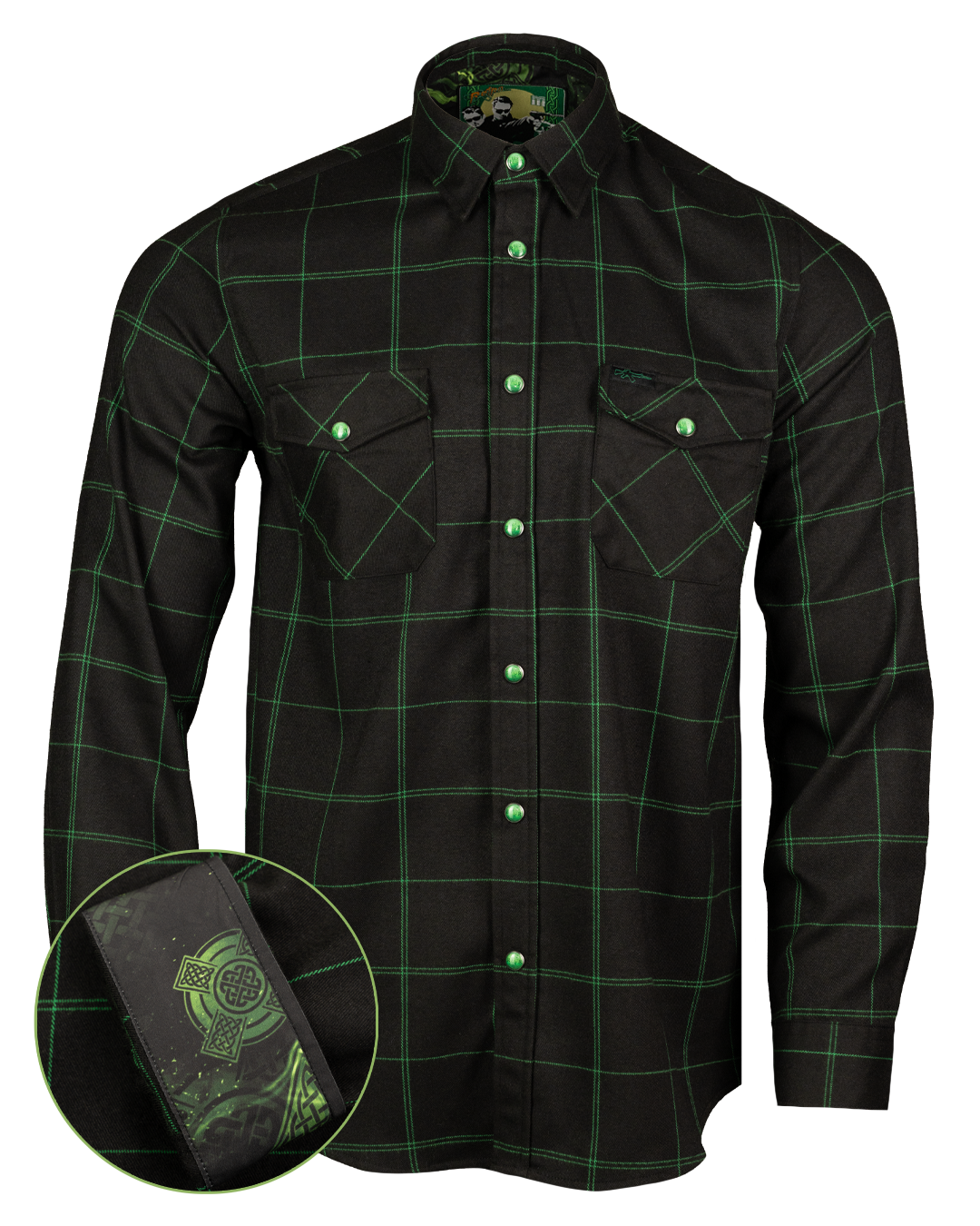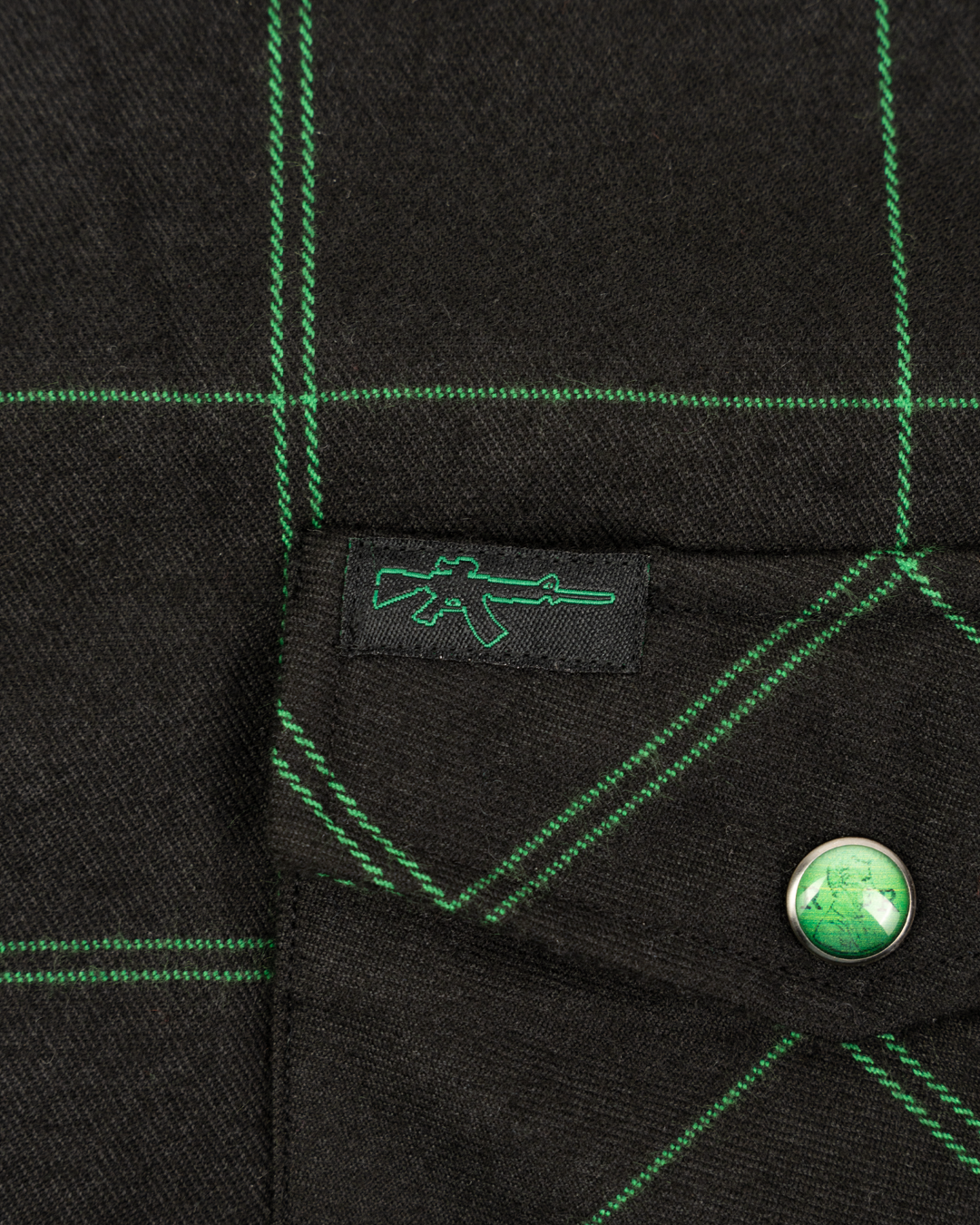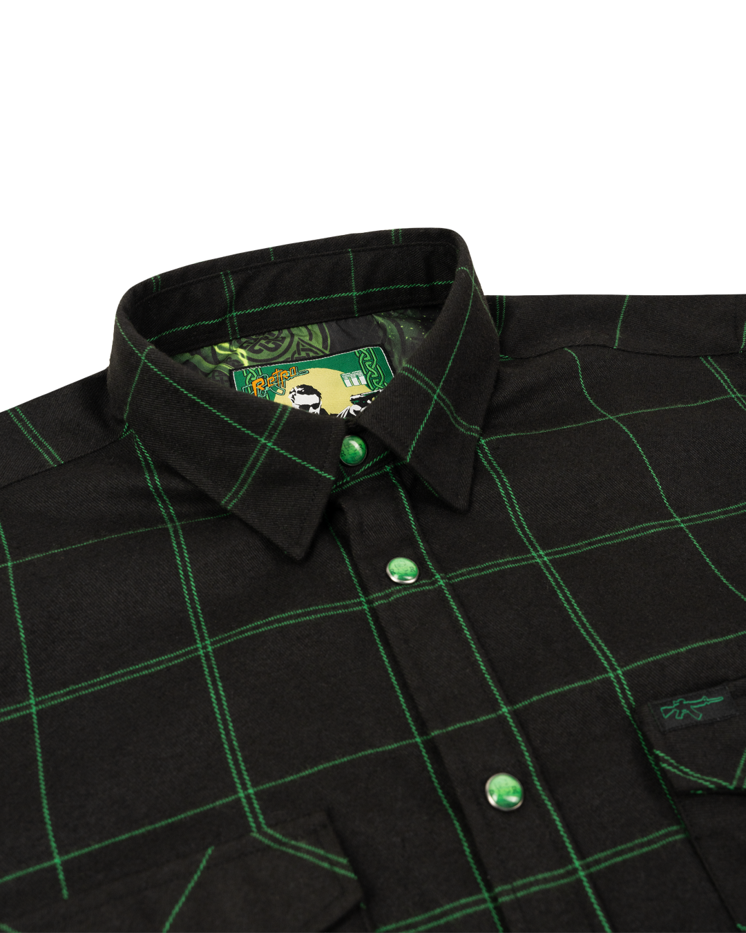 Awesome lookng nlacked out flannel. The snake eyes pearl snaps really pop on this one.