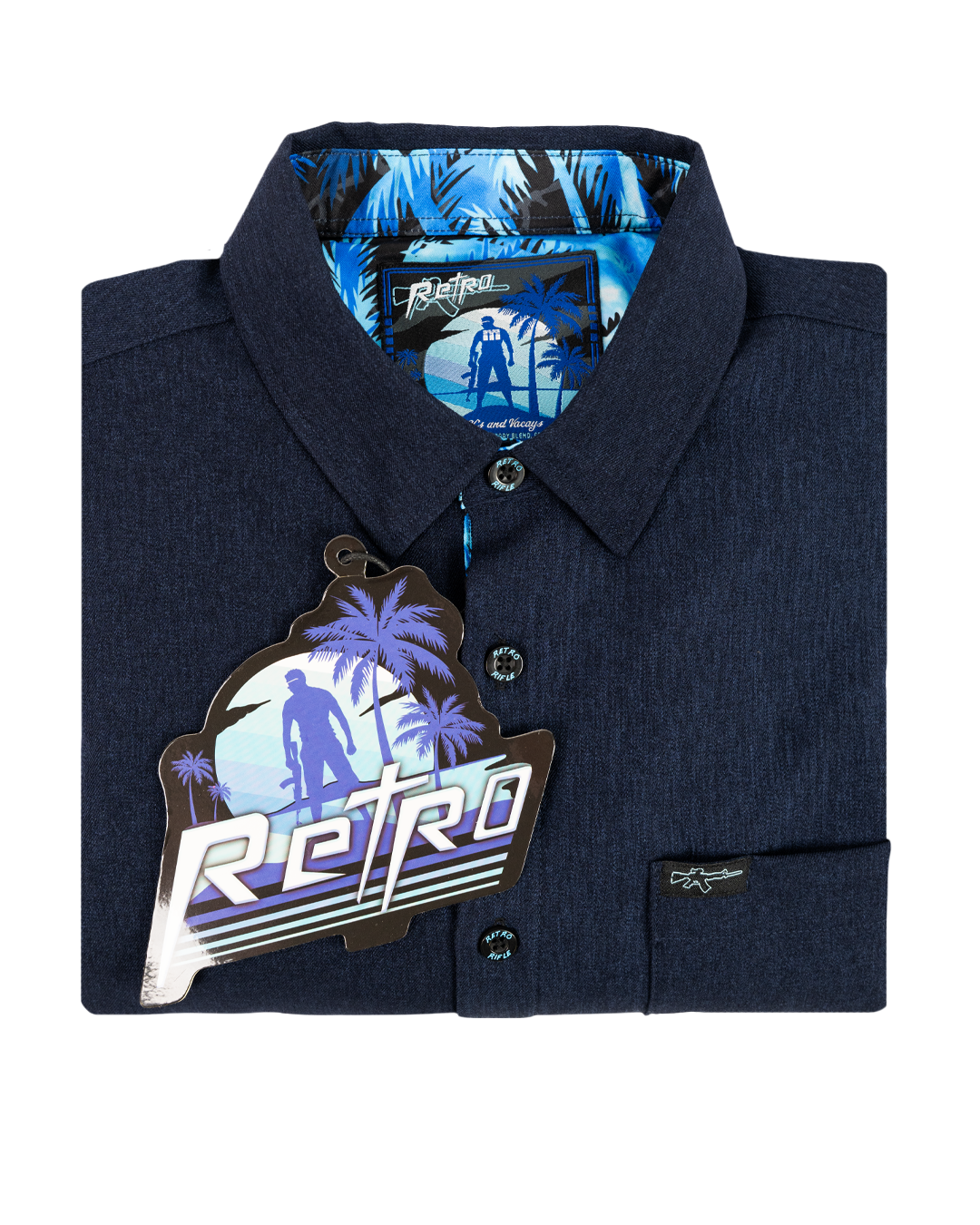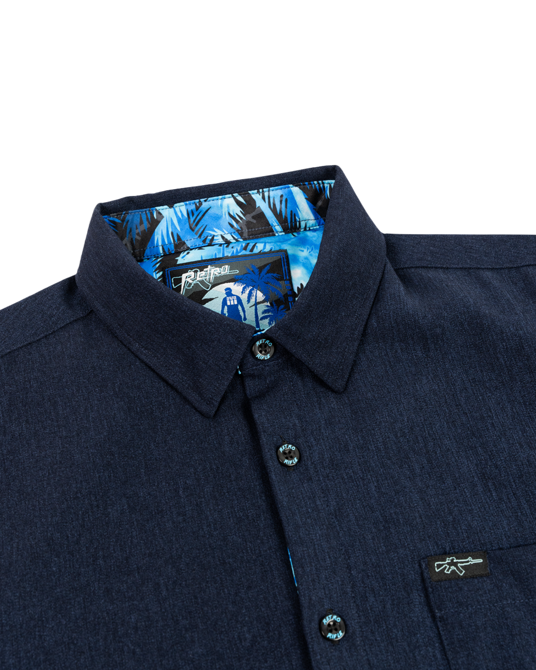 This is the first item I have not given a 5 star rating to a retro rifle product and I have a lot of thier shirts. I REALLY!!!! Love the look of the shirt, the quality is spot on and it fits perfect. The problem is the construction. It’s HOT. The cotton over the print material makes this thig too warm to wear in the office which is the reason I bought it. If just the cuffs, collar and placket had the print on them this thing would be a slam dunk and i would buy every verion produced!