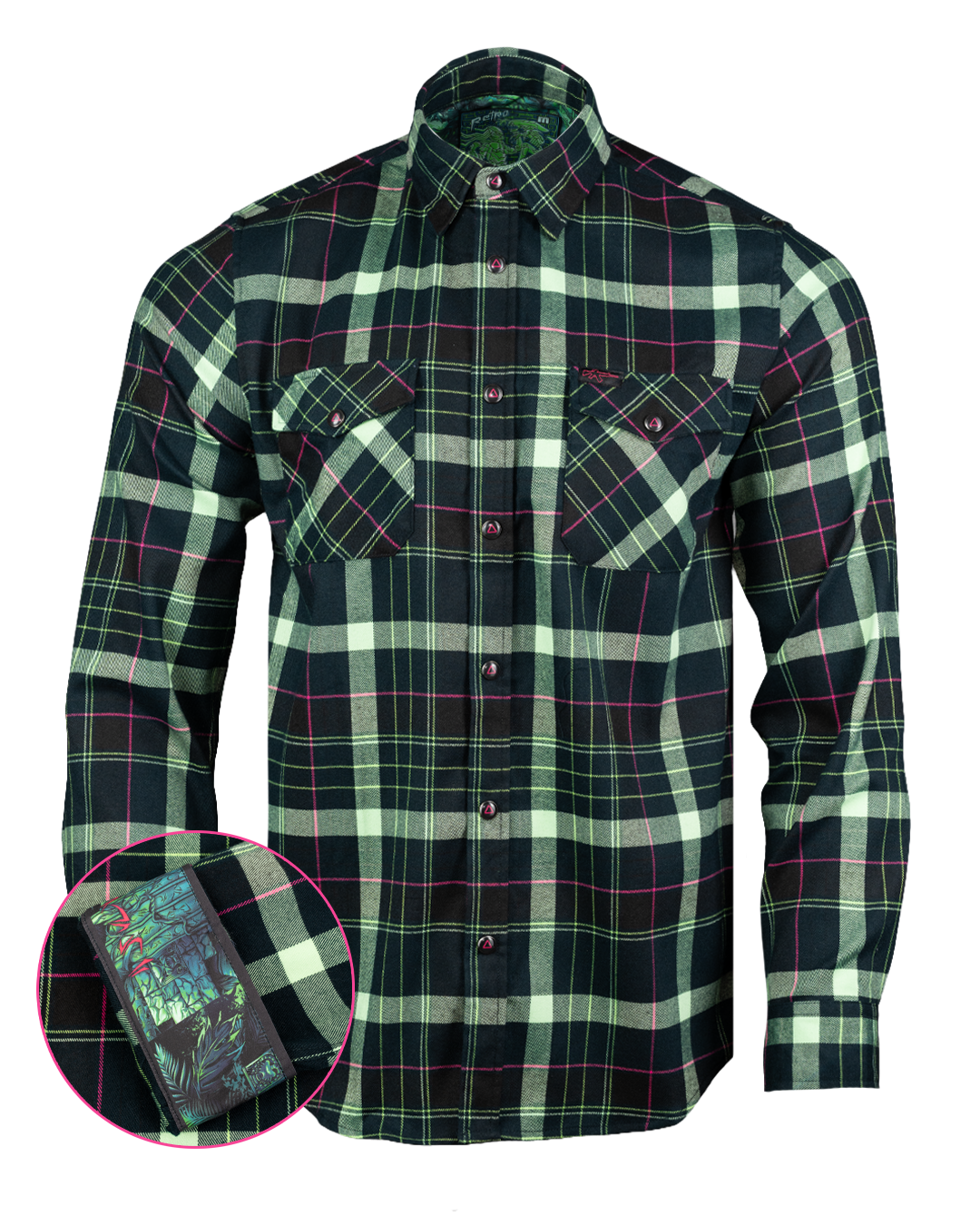 98% polyester 2% spandex, true to size, custom designed cuff and yoke. Custom red pearl snaps.