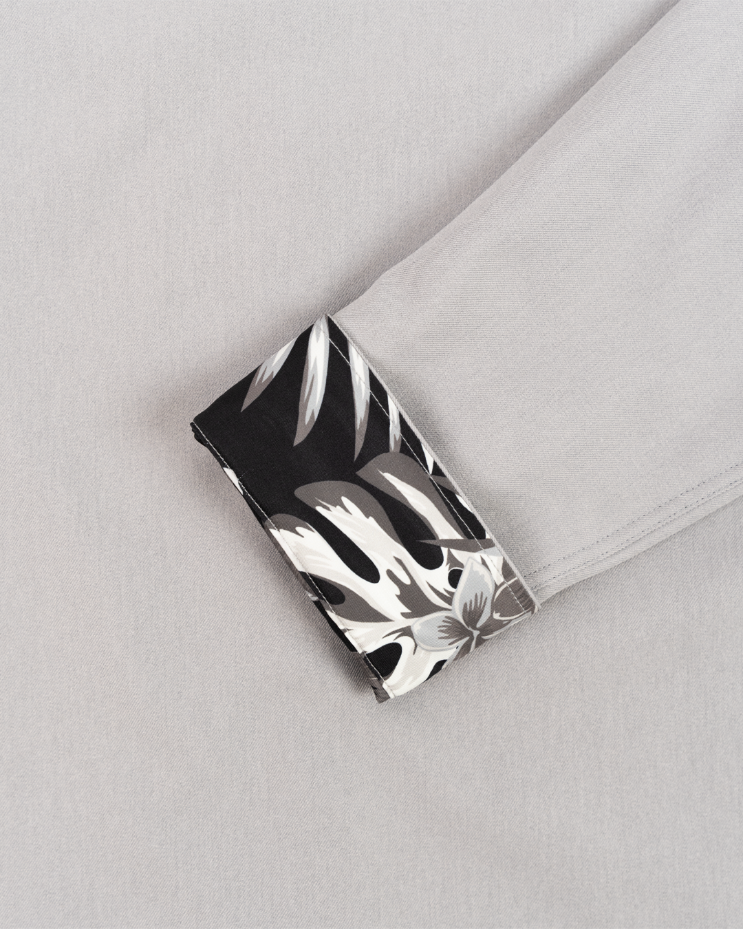 Dress shirt with full pattern design inside. 98% polyester 2% spandex.