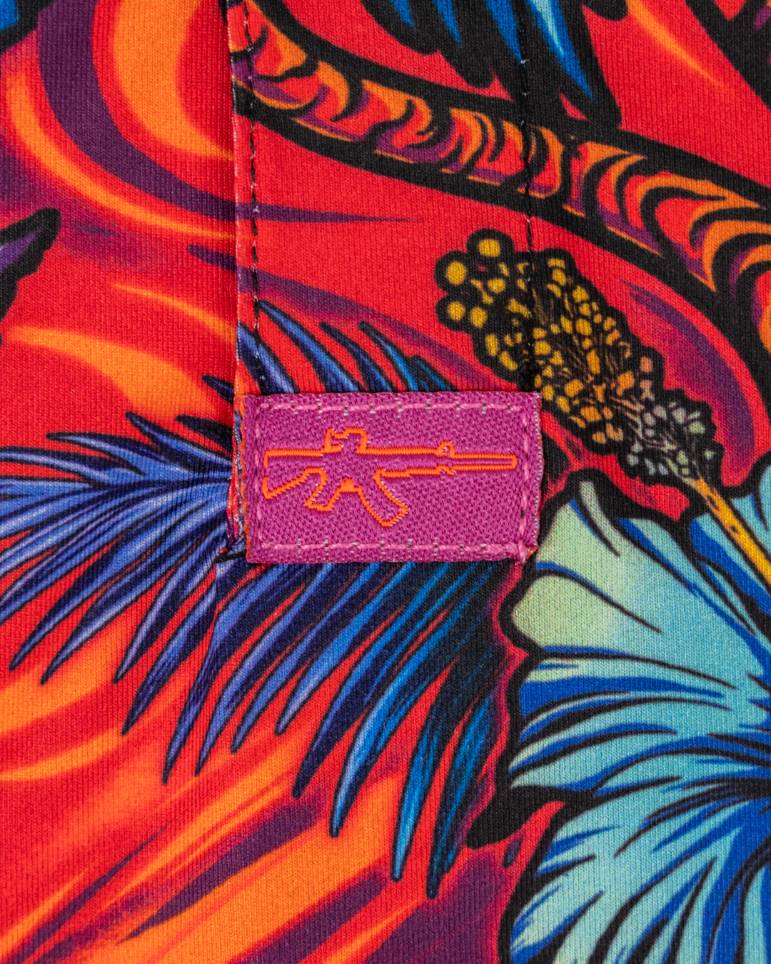 New and improved fit and fabric! This is a high stretch polyester and spandex blend with UV protection.