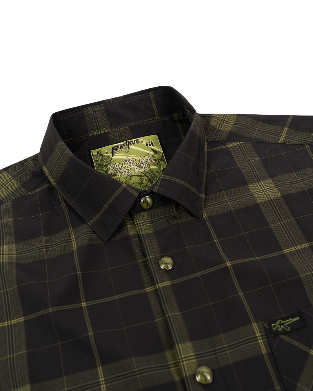 Pause for plaid. Don't miss out on the drab, Floral Drab. Light, breathable button down. 5000+ positive reviews. Custom green pearl snaps.
