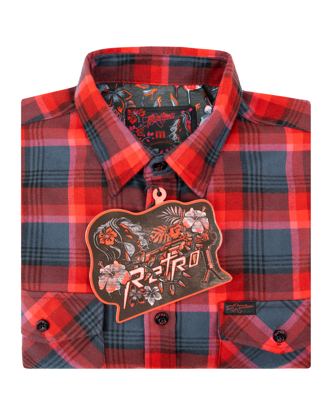 Awesome lookng nlacked out flannel. The snake eyes pearl snaps really pop on this one.