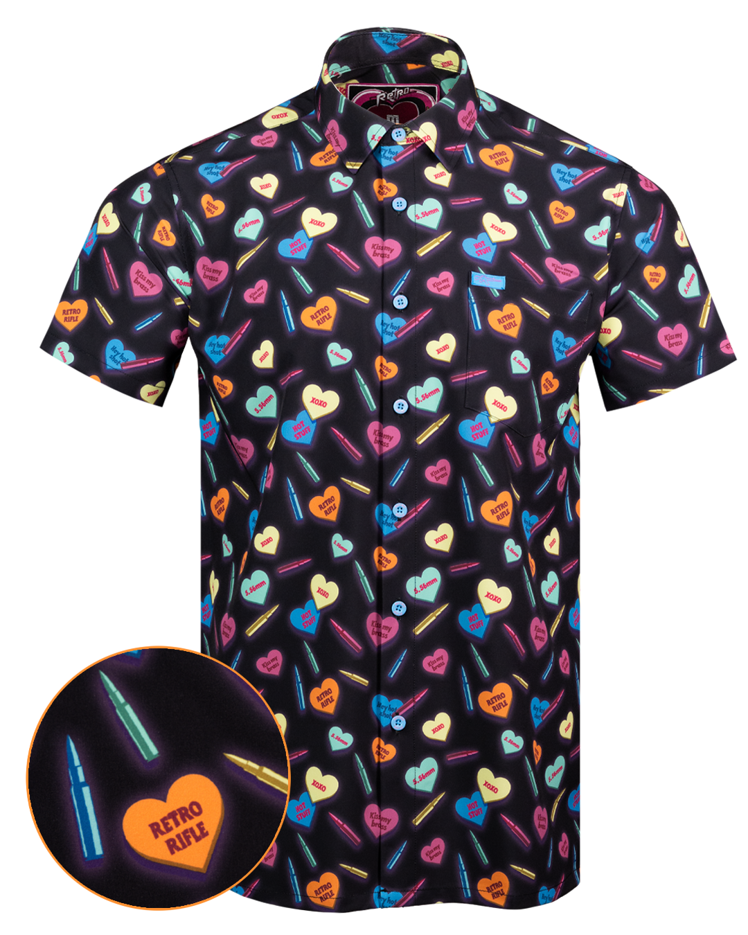 Will you be my valentine? Grab the candy heart laden button down today! Light, breathable button down. 5000+ positive reviews.