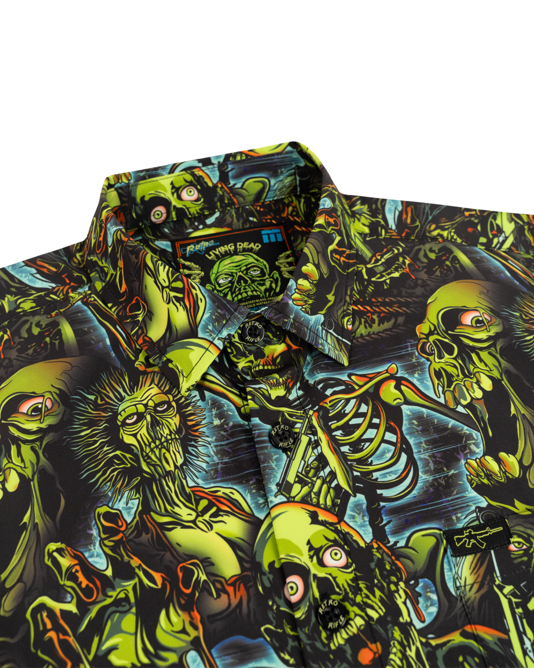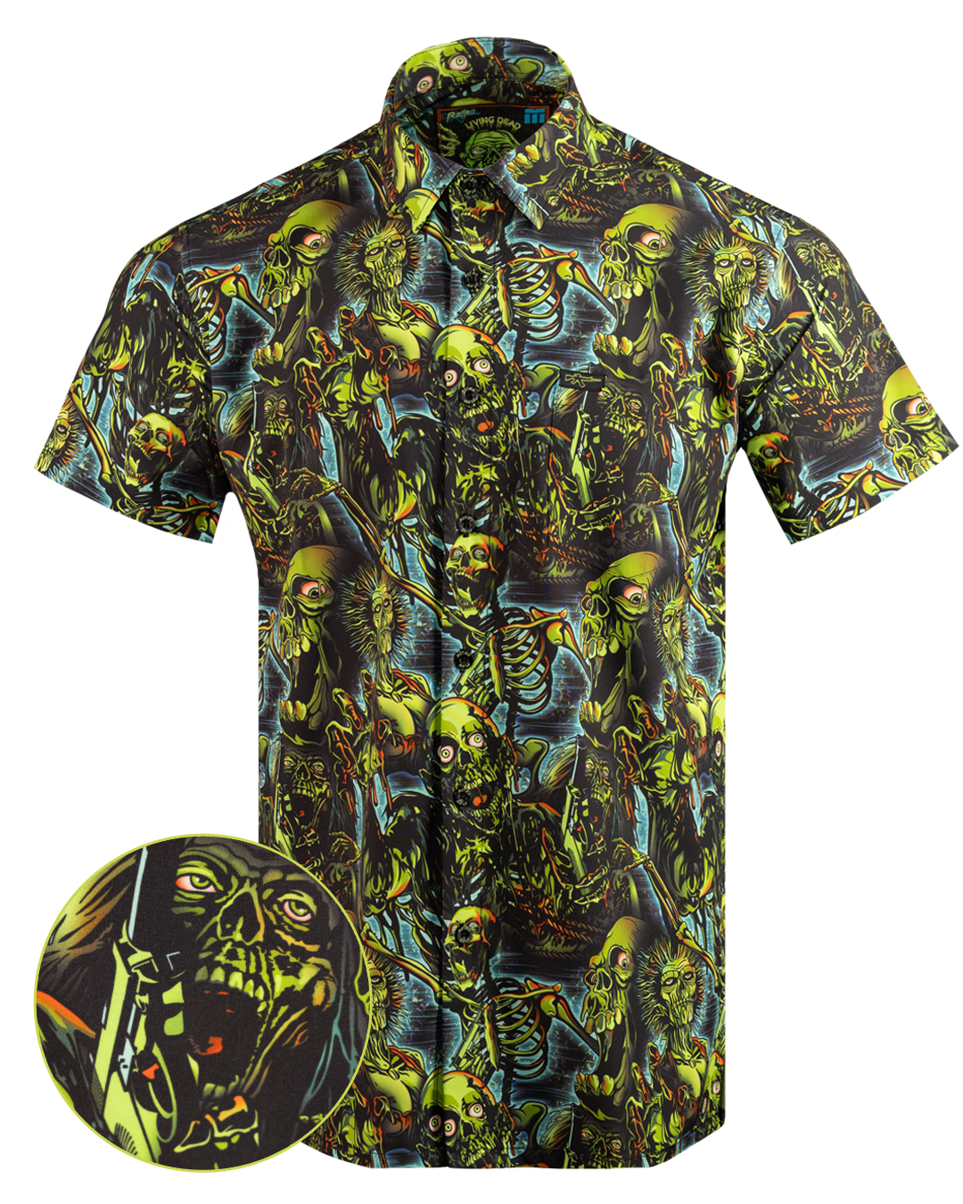 Inspired by The Night Of The Living Dead, this wild button down is sure to capture some attention! Brains not included. Light, breathable button down. 4000+ positive reviews.