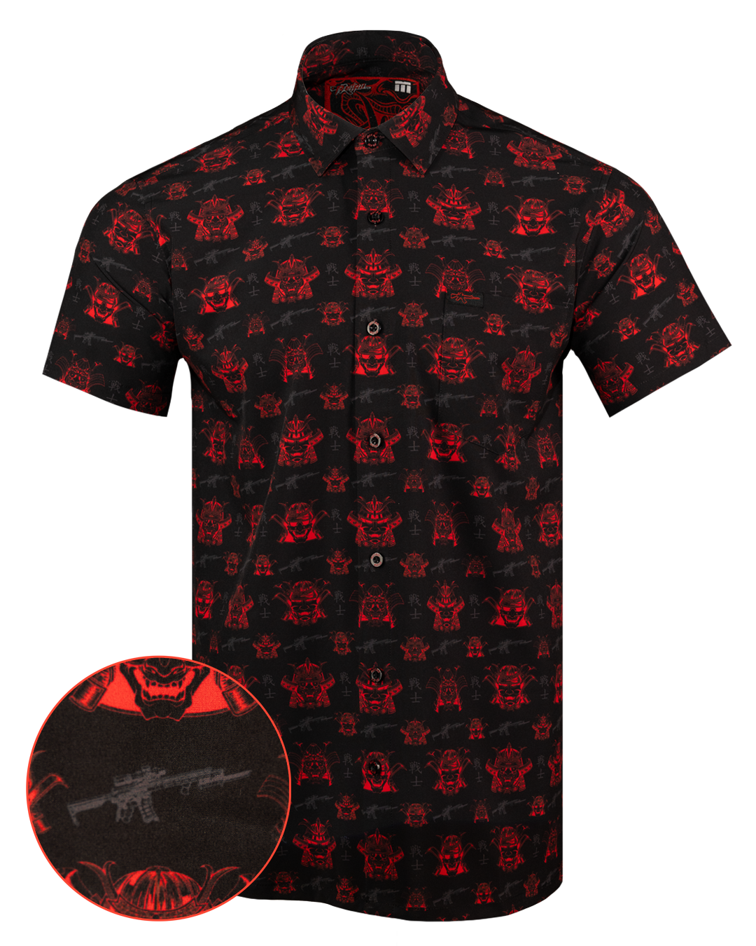 Strike fear in the enemy and defend samurai honor with the Oni Mask button down. Light, breathable button down. 4000+ positive reviews.
