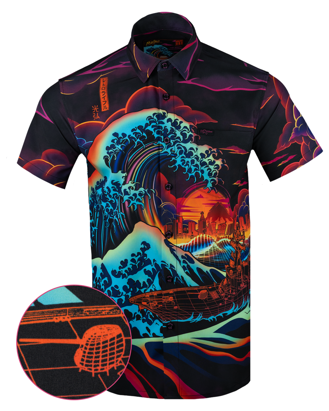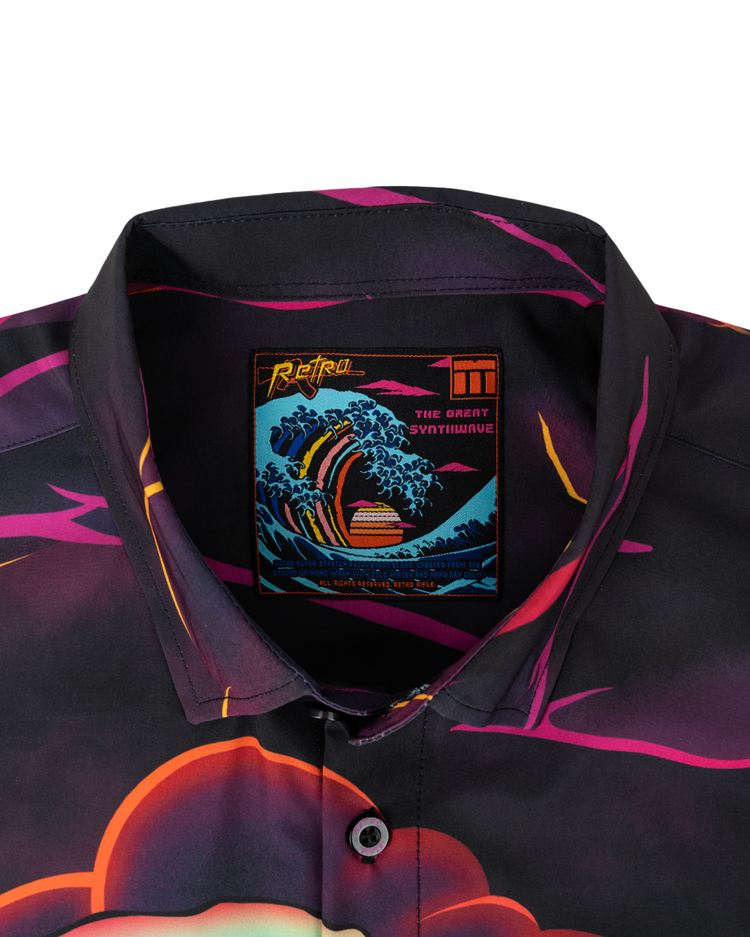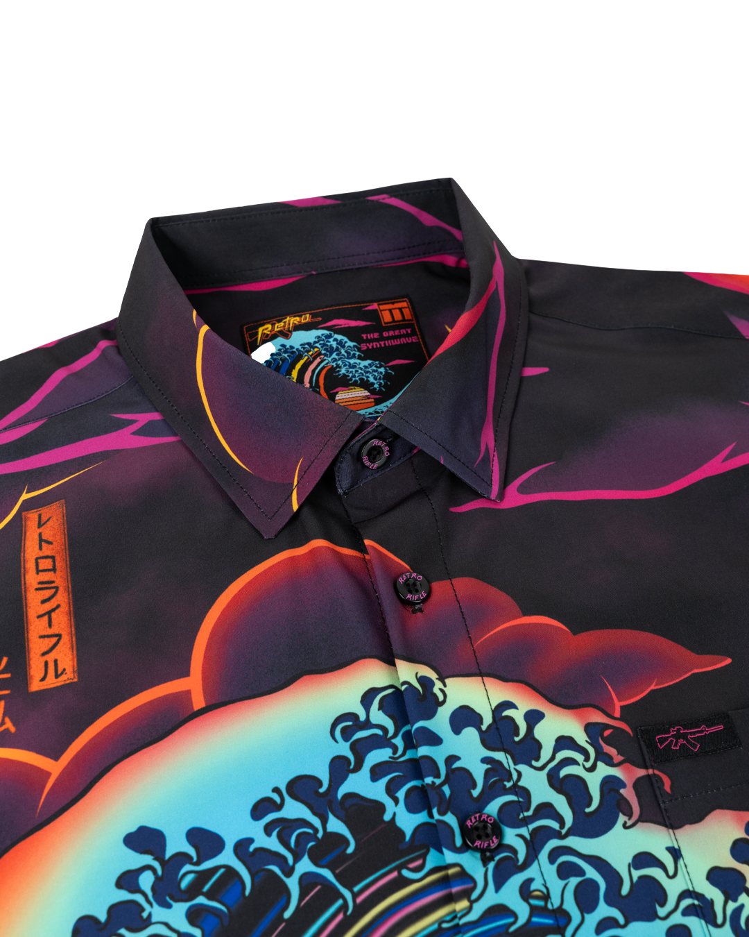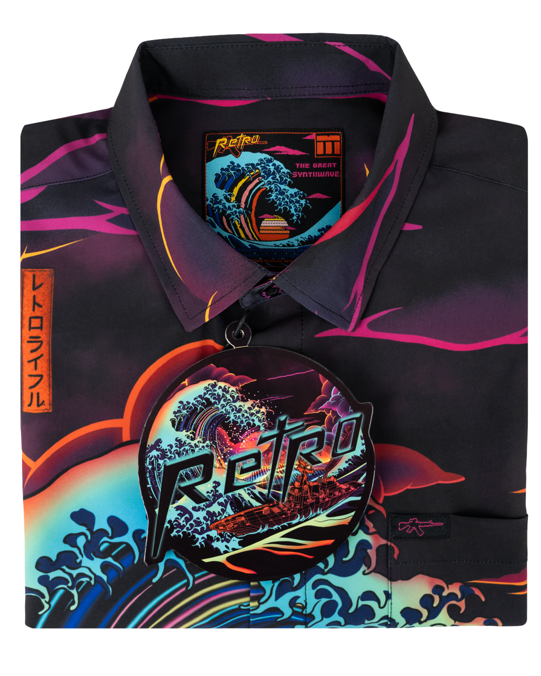 Set sail with The Great Synthwave! Get ready for a technicolor journey and a boat load of compliments. Light, breathable button down. 4000+ positive reviews.