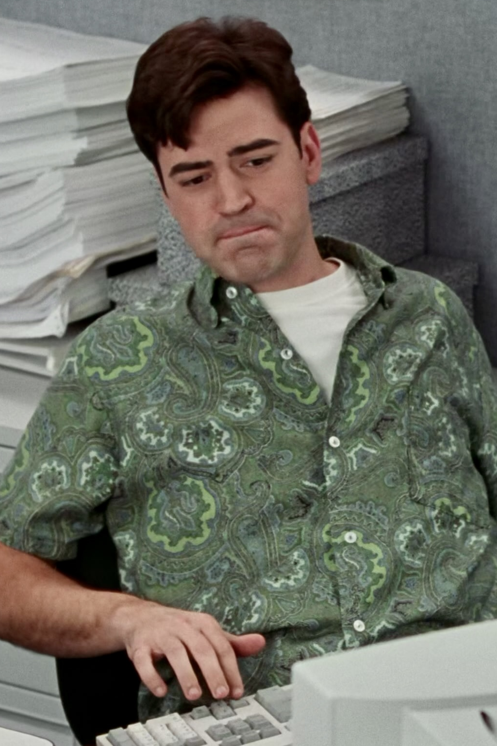 "Oh, and remember: next Friday... is Hawaiian Shirt Day." Kick back on the clock with the Pop Culture Remake from: Office Space. Light, breathable button down. 4000+ positive reviews.